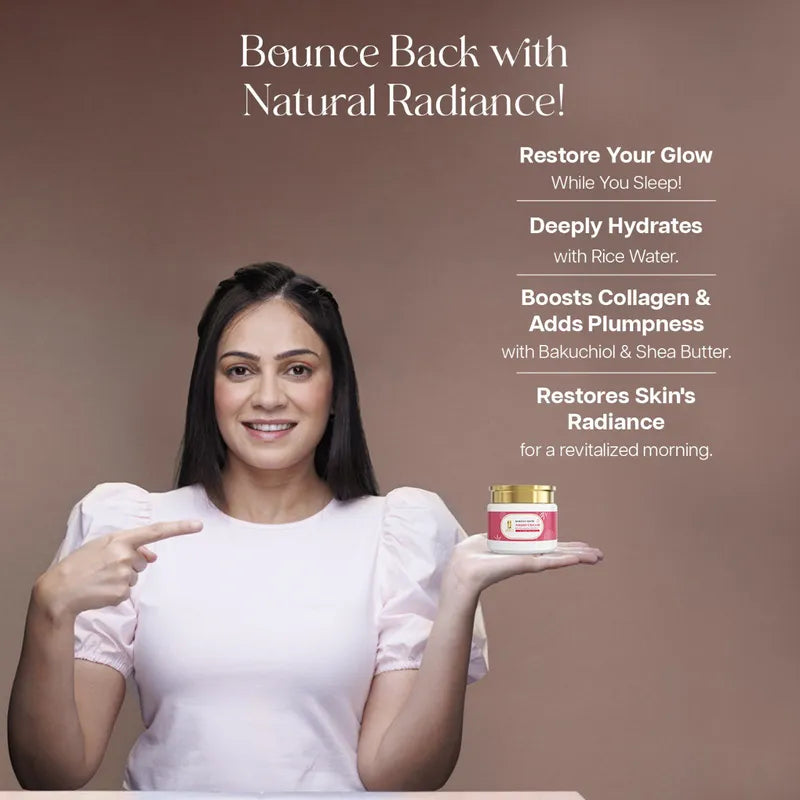 Jiden Korean Glow Night Cream works diligently overnight to restore your skin's radiance. Rice Water deeply hydrates as you sleep, and Bakuchiol along with Shea Butter boost collagen, adding noticeable plumpness and elasticity. Wake up to deeply nourished and visibly plumper skin